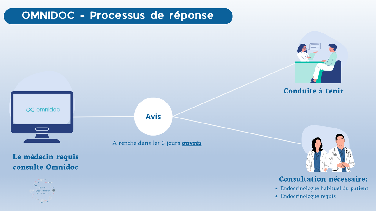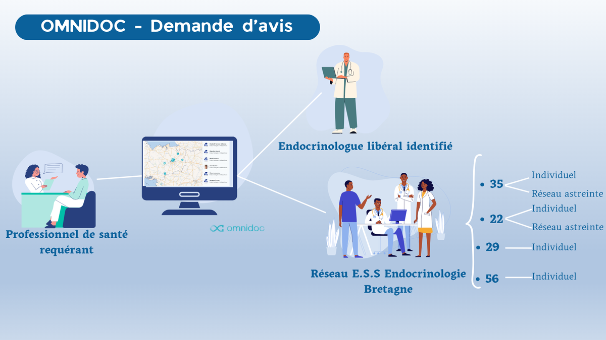 Un réseau ESS Endocrinologie a été créé sur la plateforme Omnidoc, avec une astreinte mise en place entre les médecins endocrinologues. Cela permet d'absorber les demandes d'avis et d'indiquer la conduite à tenir au professionnel de santé requérant.